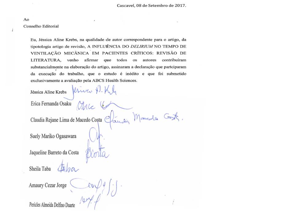 Leite MA, Osaku EF, Costa CR, Cândia MF, Toccolini B, Covatti C, et al. Delirium during weaning from mechanical ventilation. Crit Care Res Pract. 2014;2014:546349. https://dx.doi.org/10.1155/2014/546349